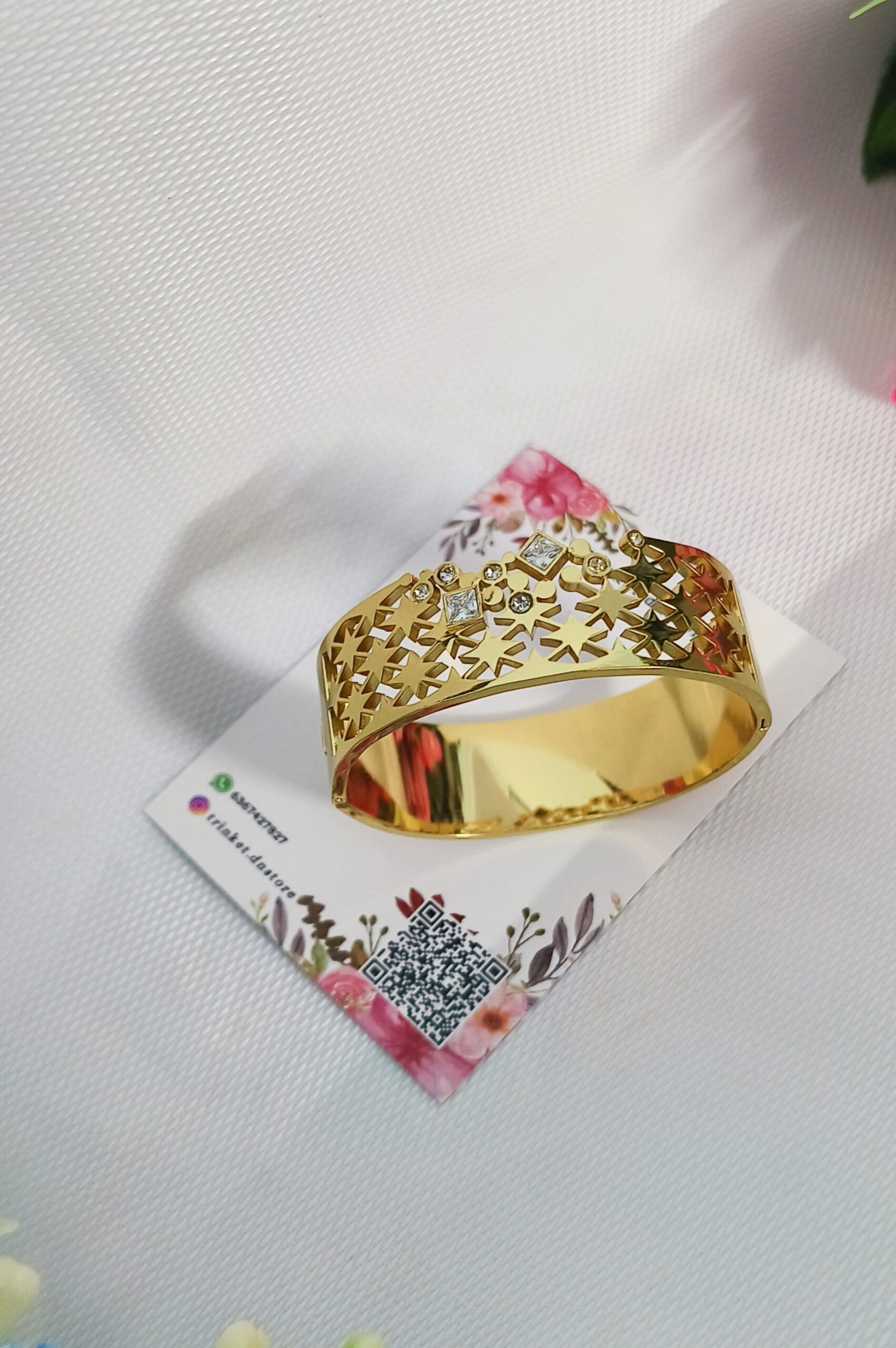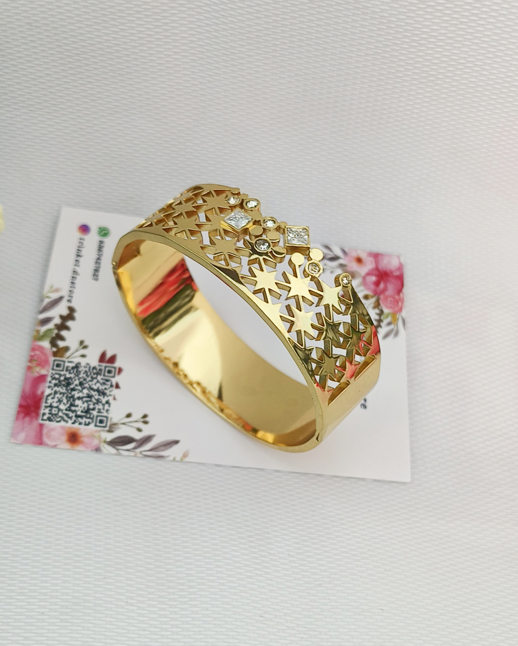 ✨ Gold tone finish with white stones | 🔓 Openable design | 📏 Perfectly Fits to sizes 2.4 to 2.8 | 💍 Elegant chain-style kada |