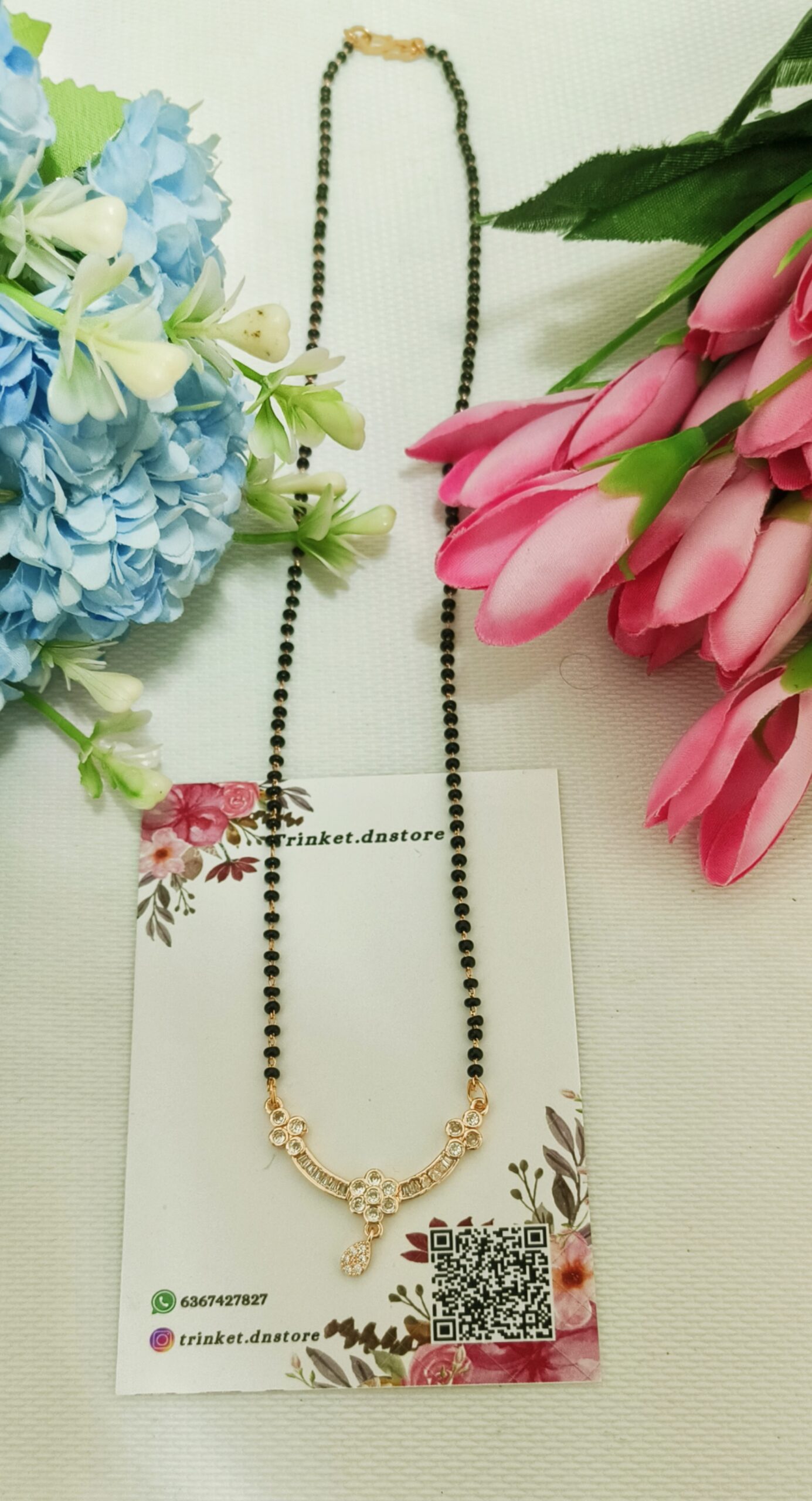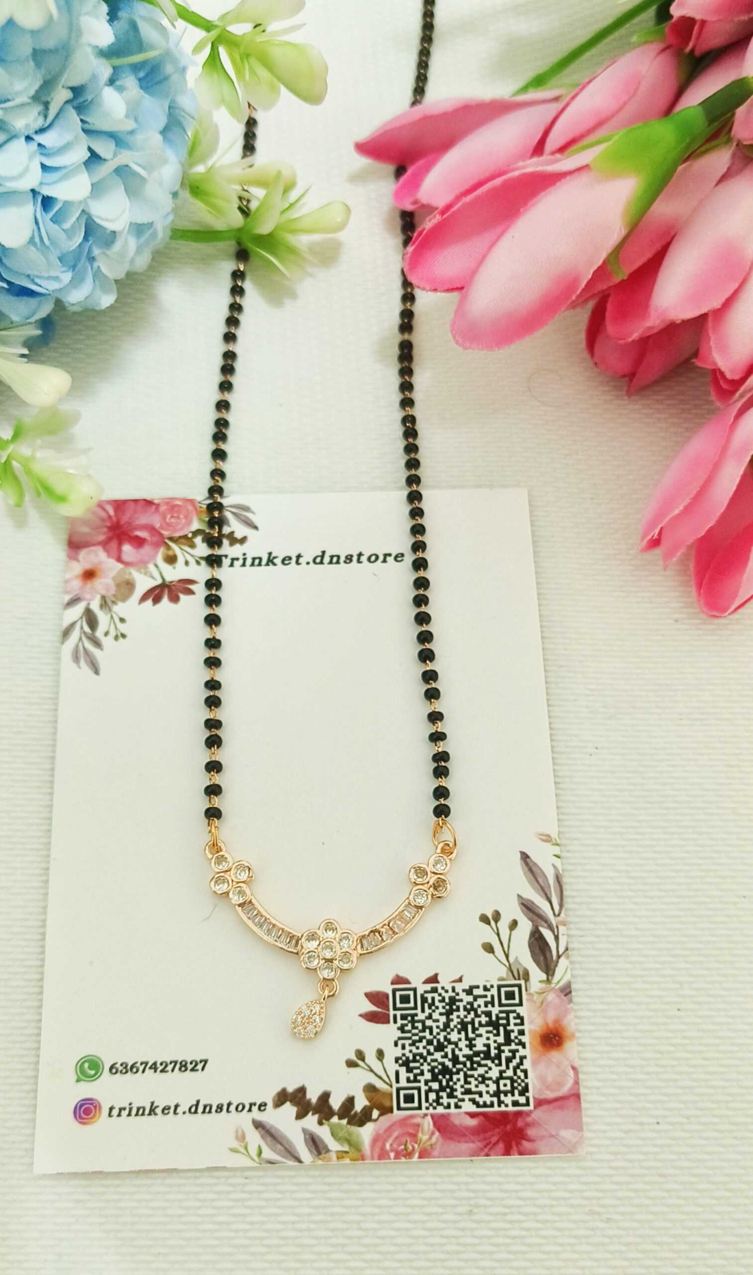 ✨ Floral Charm Teardrop Mangalsutra Necklace 🖤